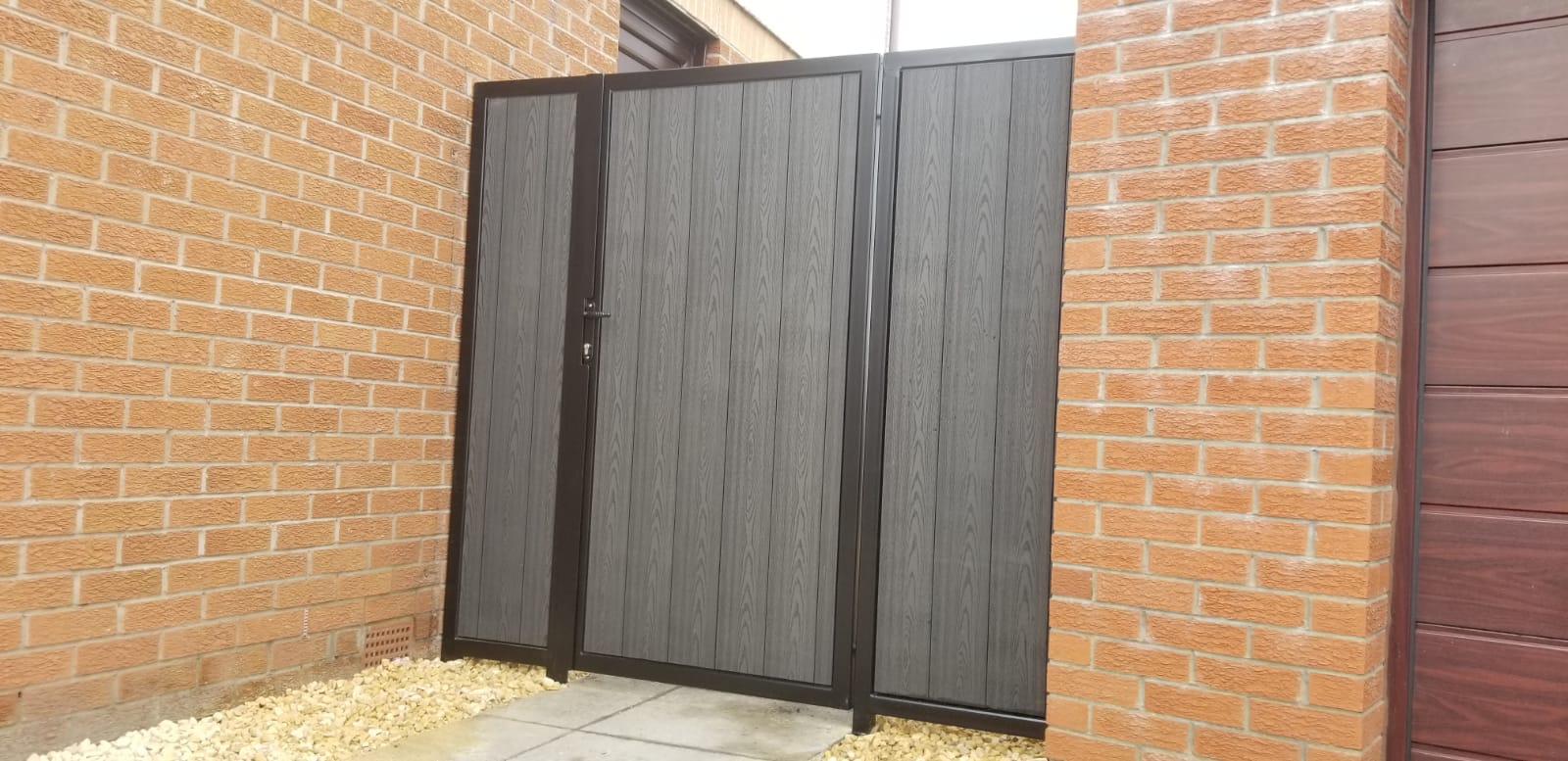 Our composite side gate range can be custom made with a fixed panel, to suit larger gaps. Any of our short or tall side gate designs can be manufactured with a matching panel.