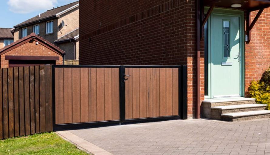 Stunning short driveway gates, clad with next gen. composite.