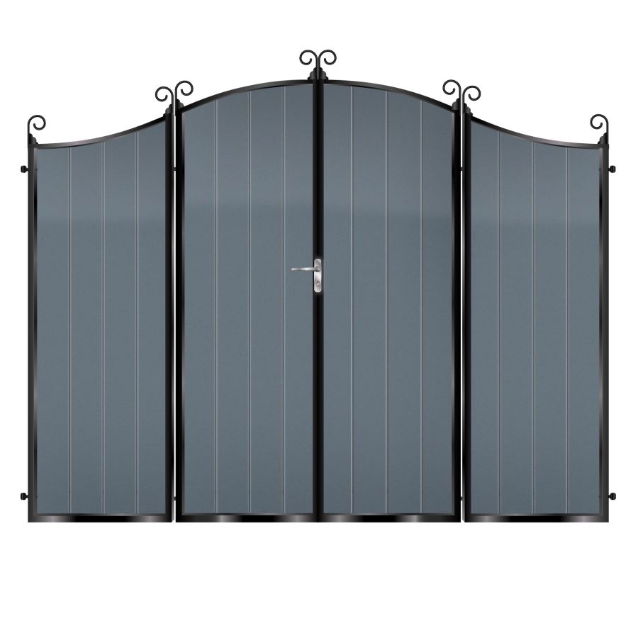 The Donaldson Bi Fold gate brings the best in security and privacy to your home. Complete with our maintenance free aluminium infills. Unique space saving bi fold solution.