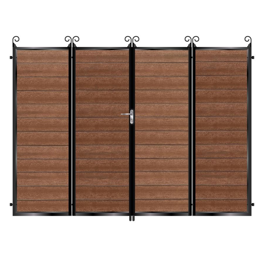 Our metal framed composite range is amazing value for money - and maintenance free! Manufactured from our ultra premium 50mm frames and clad with Next Gen. composite boards at 150mm wide. These maintenance free composite boards have a realistic wood effect on both sides, so the gate looks equally as stunning from the inside!