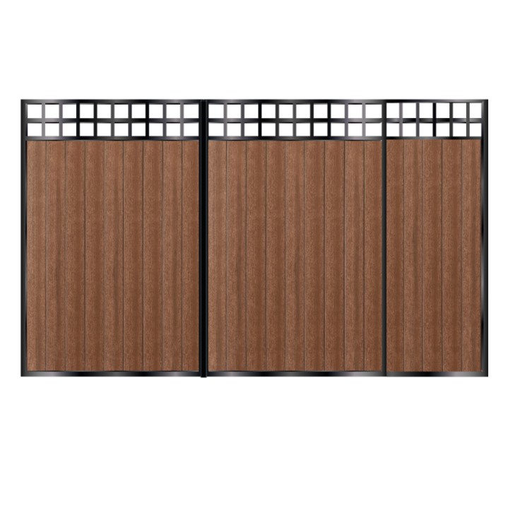 Welcome to our composite infill, metal framed gate range. With a wide range of colour combinations we can be sure to find a match for your requirements. All of our composite is eco friendly - a mixture of recycled wood and plastic - which lasts a lifetime. Combining ultra premium 50mm gate frames with the composite cladding results in a luxurious & maintenance free product! Look through the product photos on this page for guides on how to create your custom gate. More info & specifications at bottom of page. For your peace of mind we will send a confirmation email/call you after order is placed to confirm sizes prior to fabrication. Please use our measuring guide located within product photos, to help choose the correct 'gap width'. All we need is an accurate 'Gap Width' and we will calculate everything else - clearances, posts (if required), hinges etc. Every item within our composite infill range comes galvanised as standard. We also offer optional Powder Coating. Check out our gallery to view the high quality of these gates: Gallery. For installation options & guides: Installation. For shipping & lead times: Delivery.Next Gen. Composite Sliding Gate Range