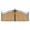 Gates with arched designs vary in height, with a typical driveway gate arch being around 300mm or 1 foot. If you select an gate which includes an arched top, then the height you select will be the height at the edge of the gate (nearest posts/pillars). The height of the arch will be taller than your chosen size. If you require exact arch sizes please let us know when ordering and we can provide technical drawings!