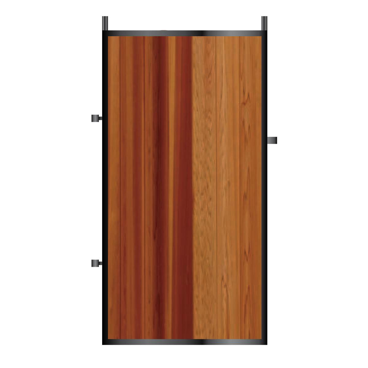 We offer both Western Red Cedar & African Iroko timber infills on our metal framed timber range. Please view the product photos for examples of each timber infill. Note - we can also supply other timbers if required - for example Siberian Larch. Please contact us for more information. Please contact us for free samples of our timber gate infills. Our timber is sourced from TRADA approved forests. This is a worldwide known company which has high standards for sustainability.Timber Oiled Or StainedÂ