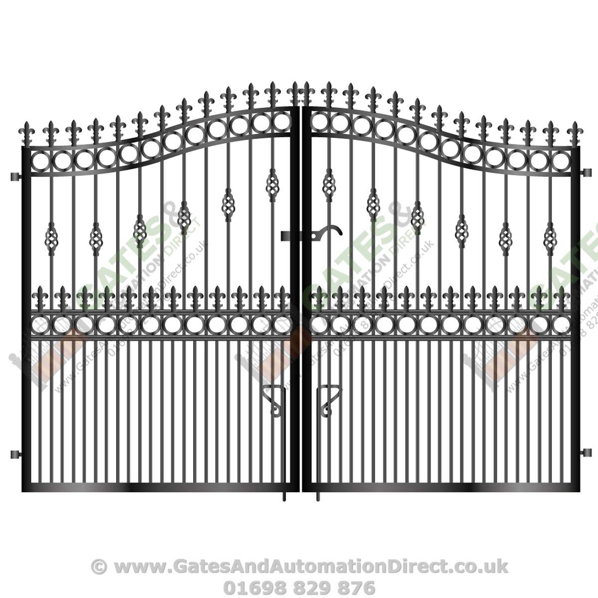 All of the components (metal decorations) on our gates (railheads, circles, baskets, bushes etc) can be hand finished with gold metal paint (or any colour).